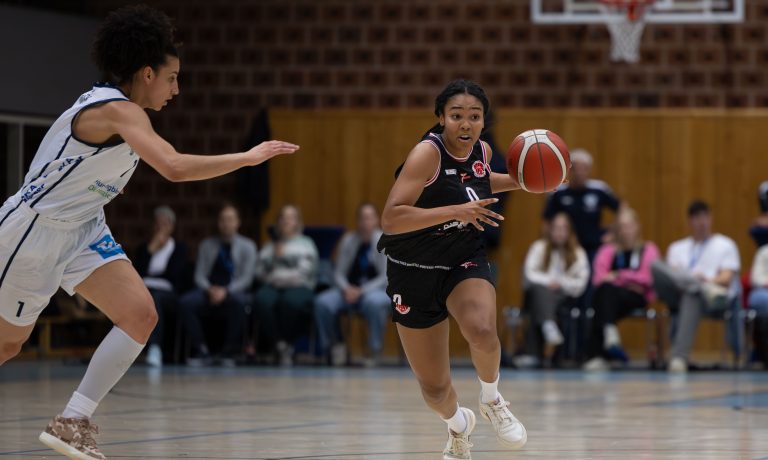 Beitragsbild: Charisse Fairley und ihre Teamkameradinnen müssen Joanna Scheu (rechts) diesmal deutlich besser kontrollieren. Foto: Andreas Gieser